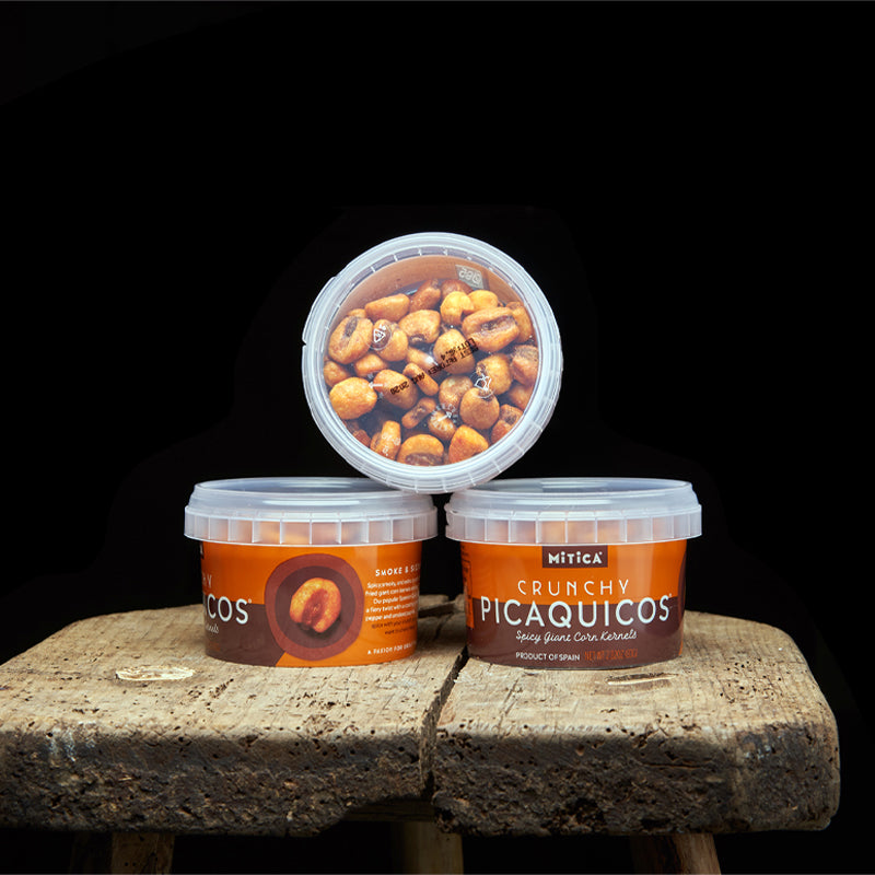 Crunch into the bold flavors of Spain with Picaquicos Spicy Giant Corn Kernels. Fried to golden perfection for maximum crispiness, each kernel is seasoned with a fiery blend of cayenne pepper and smoked paprika for a snack that packs both heat and flavor.