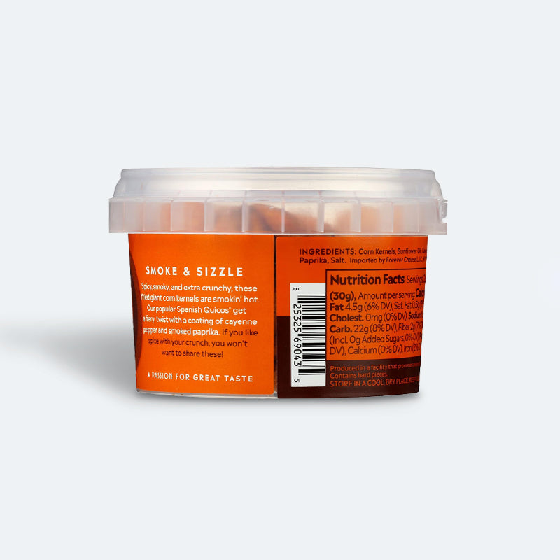 Crafted in Valencia, Spain, these corn kernels deliver authentic Mediterranean snacking with a spicy twist.